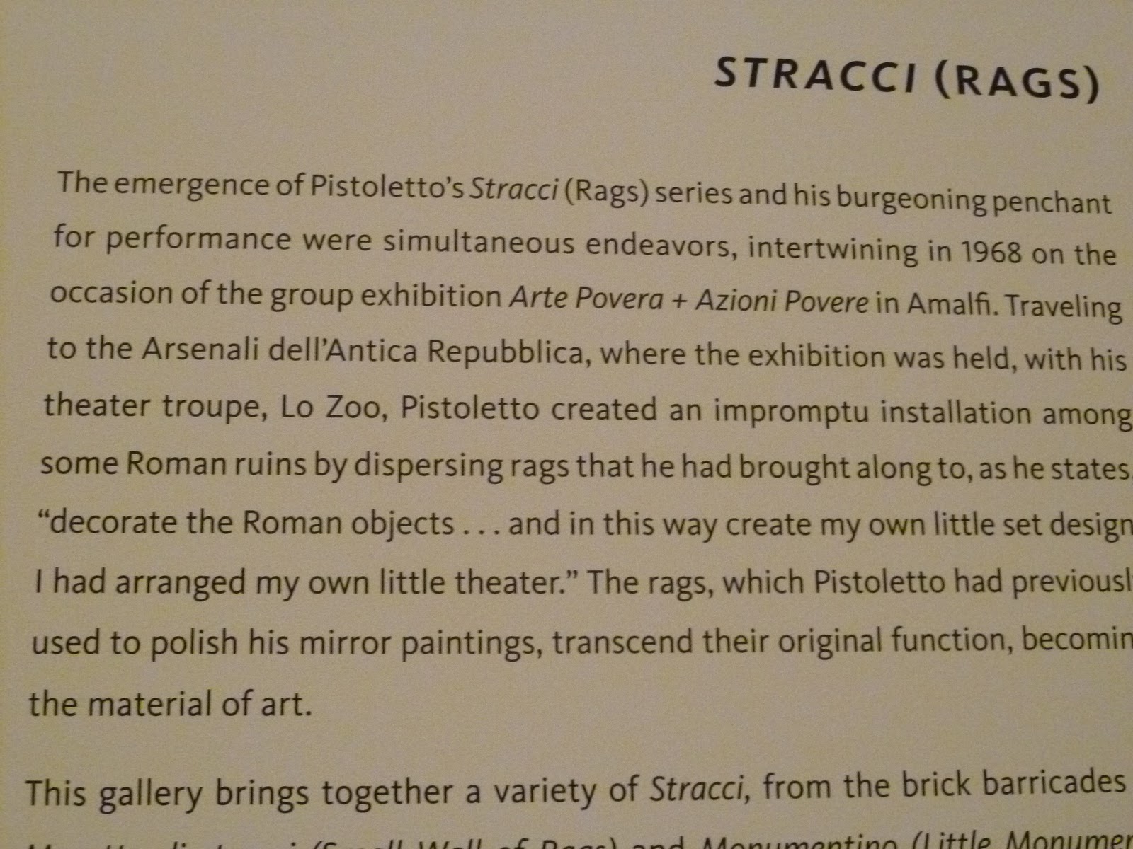 Stracci (rags) developed along with Pistoletto’s performance art in the late 1960s.